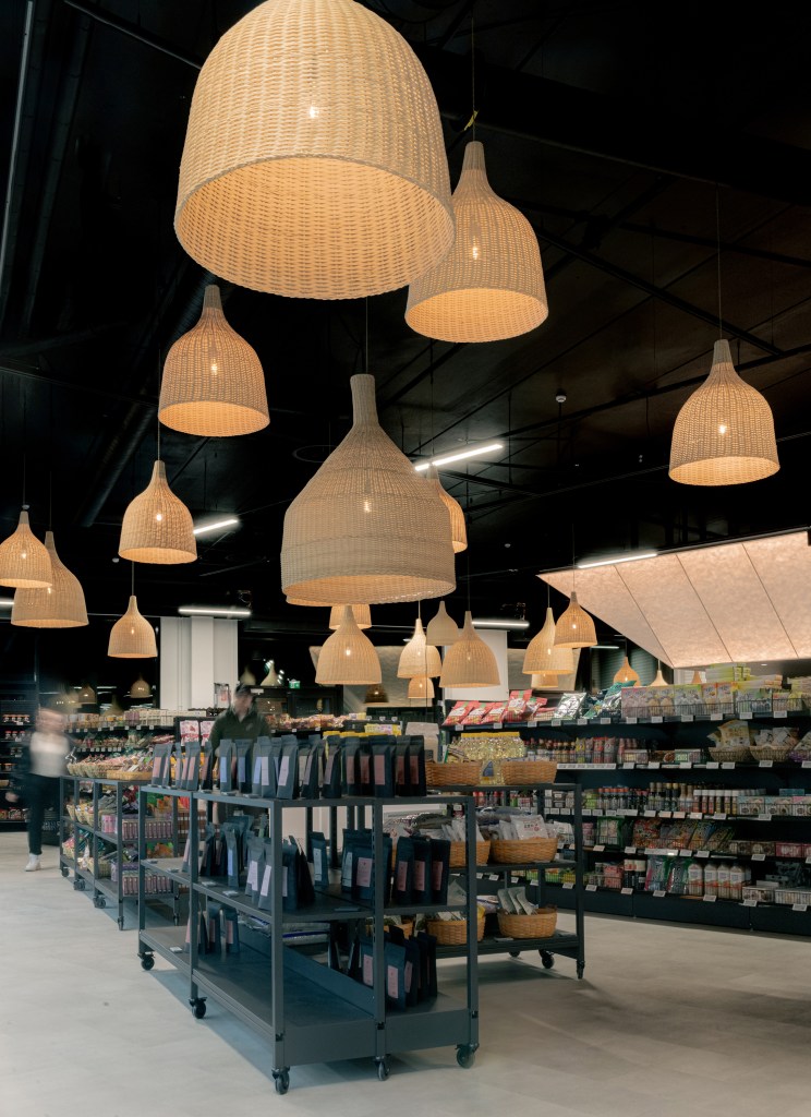 The project is an interior design project for an Asian food supermarket, and it is the first store of this brand located in a brand-new shopping mall in the Helsinki area of Finland. The store is positioned as a high-quality Asian market. In addition to selling a variety of Asian food, the store also has its own café and tea area, and service point of local Posti.