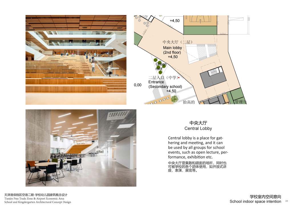 Study should also be extended after school time. On the premise of ensuring safety, part of the school’s functions will be as open to students and the community as possible, for instance the library and auditorium in this project, we propose they could be used by students and the community during weekend and holidays. - More relaxed atmosphere
